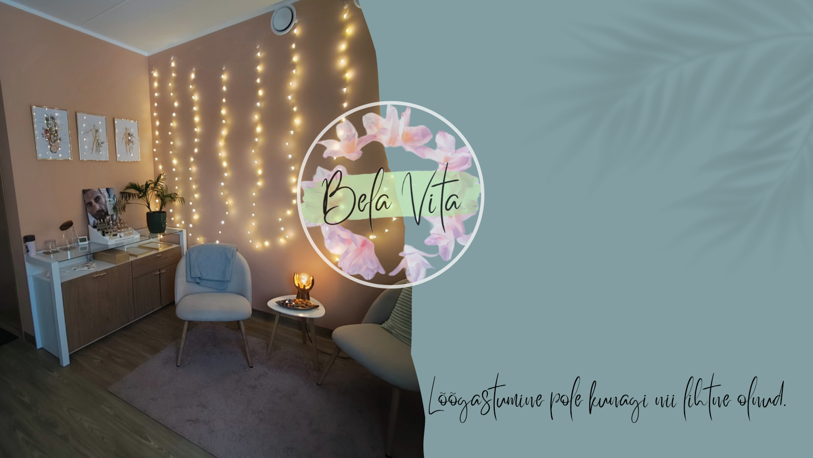 Bela Vita Pärnu hubases massaažitoas leiate laia valiku teenuseid lõõgastamaks nii keha kui vaimu. Meie peamiseks eesmärgiks on aidata läbi manuaalteraapia leida tasakaal ning vabaneda pingetest, mis on kehasse kuhjunud. Tervis ja heaolu on hindamatud väärtused, mis on kindlasti alustalaks elamaks ilusat elu!